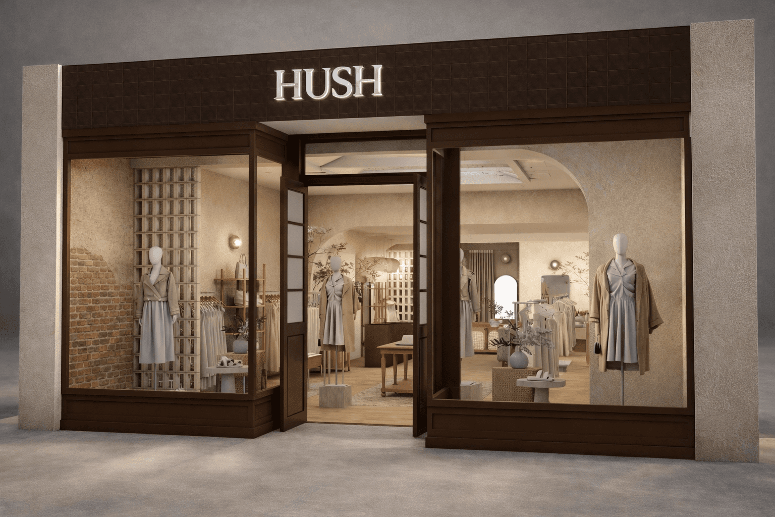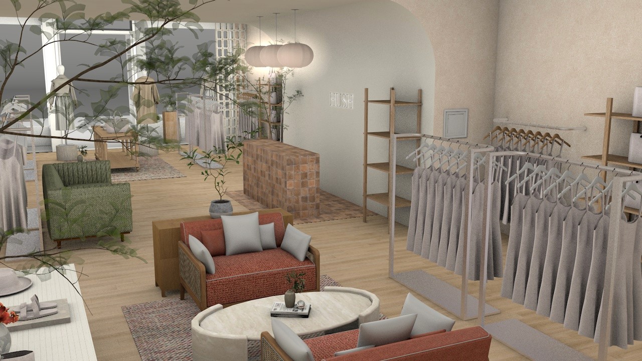 The project set out to translate the identity of Hush from a purely online presence into a thoughtfully curated bricks-and-mortar retail experience. The ambition was to create a space that feels like a natural extension of the brand—capturing its relaxed, premium aesthetic while offering customers a more immersive and personal way to engage. Every aspect of the design is driven by the desire to reflect Hush’s core values: effortless style, quiet confidence, and a focus on helping women feel their best in everyday life.